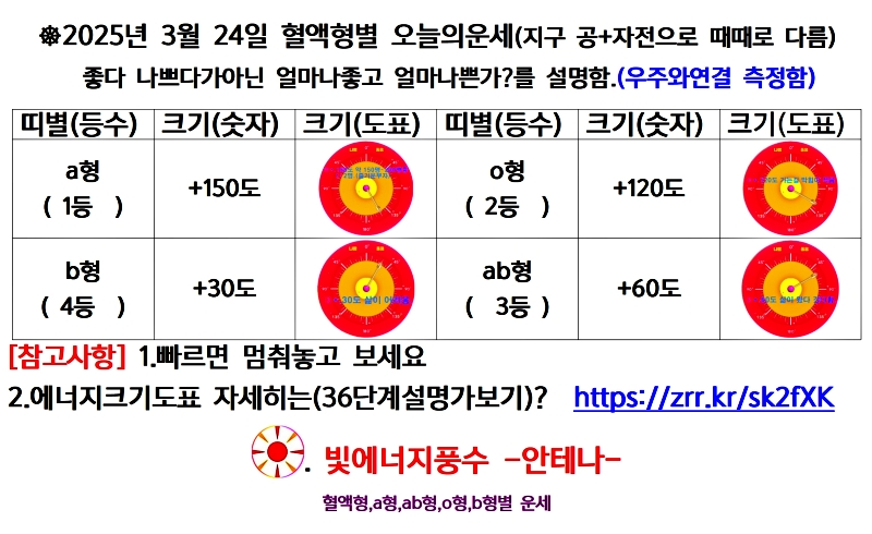 🔮 혈액형별운세 🔮25년3월24일(월)